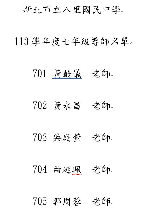 113學年度七年級新生常態編班結果與導師名單