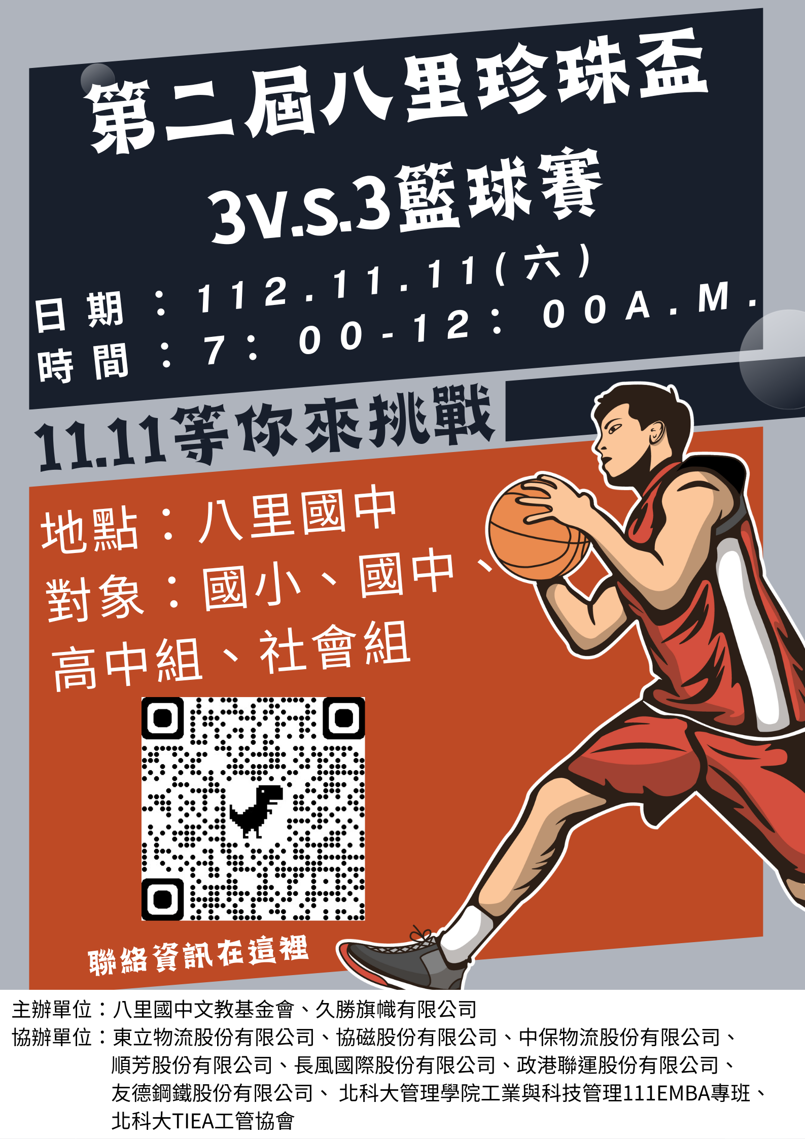 2023新北市八里區第二屆珍珠盃籃球三對三鬥牛競賽報名簡章